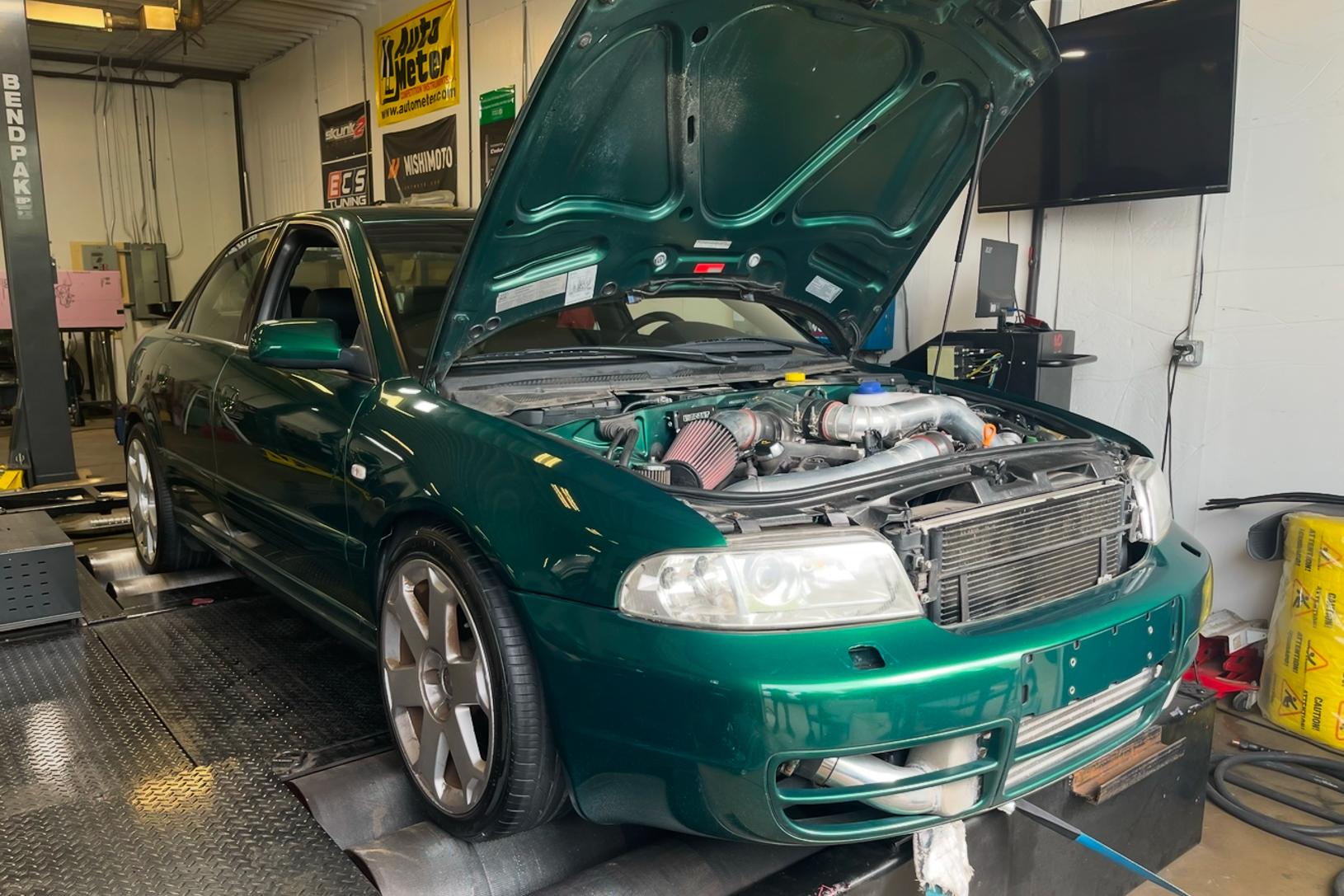 Finished in rare Cactus Green, this B5 S4 is capable of 660hp at the wheels but is running a conservative tune for motor longevity. It benefits from a single turbo conversion utilizing a Borg Warner S360 turbo and all the supporting upgrades. A beefier Stage 3+ clutch puts the power down reliably and a StopTech big brake kit helps keep the extra power in check. This looks like a solid build and we are fond of the B6 Avus wheels.