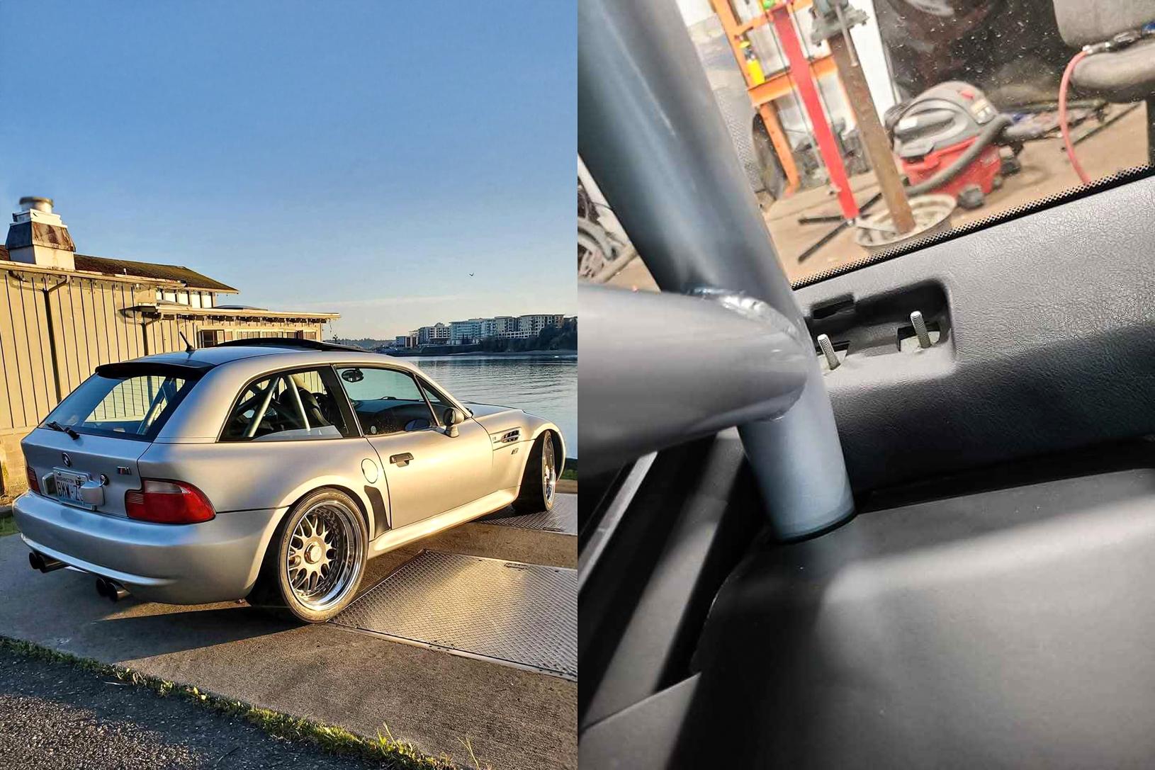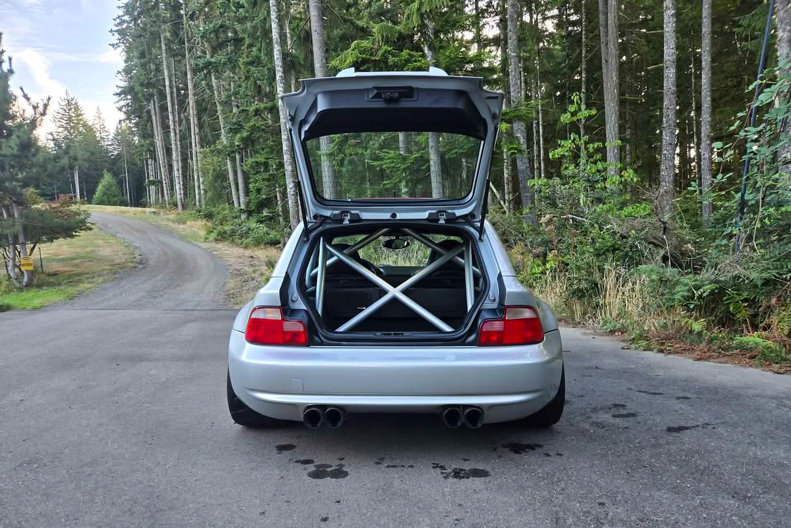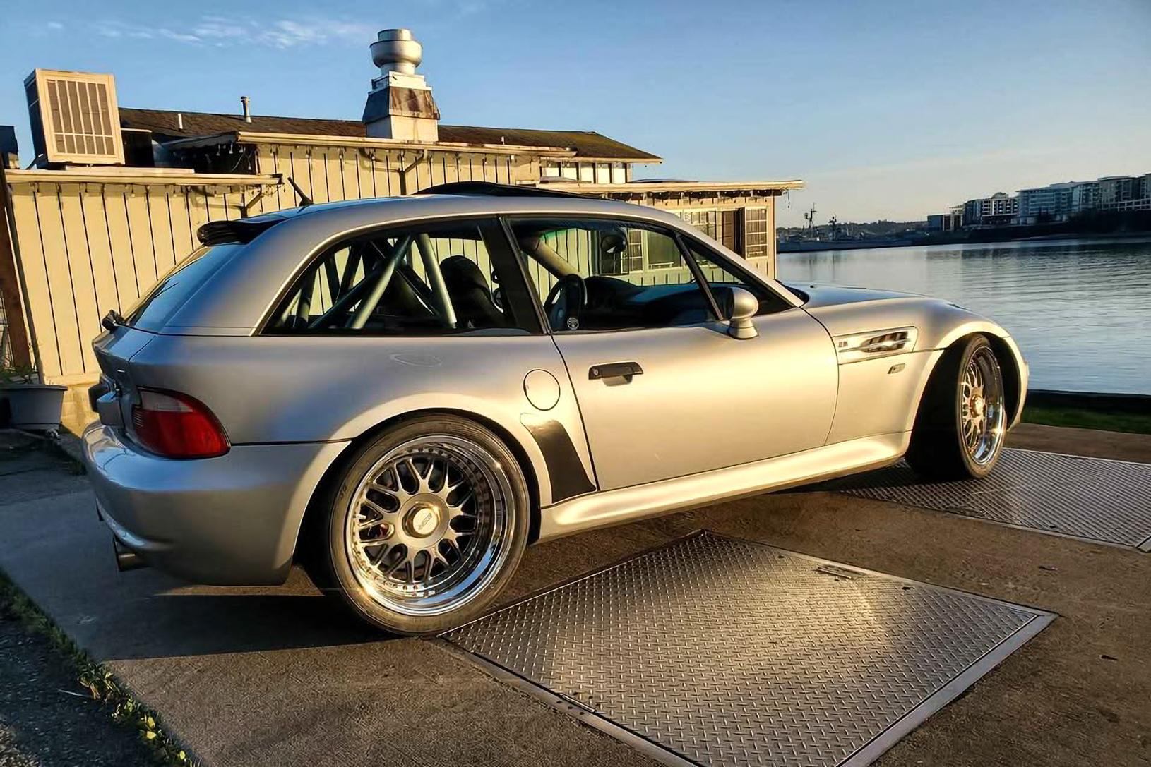 This Z3 M Coupe is producing considerably more power thanks to a Rotrex supercharger, and it has recently seen $10k in work completed. A half cage has been fitted for safety and to improve structural rigidity. ESR three-piece wheels have been employed to help separate it out from the rest, and the original wheels are included in the sale for the purists among us.