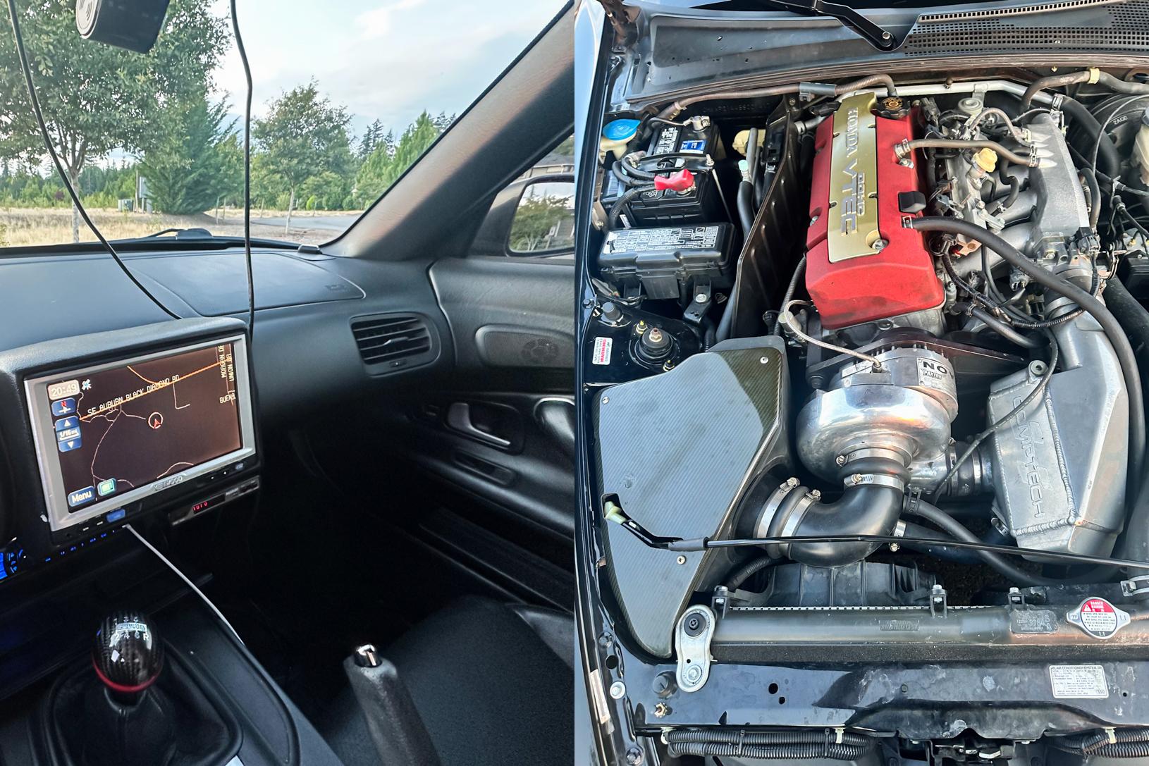 Offering considerably more power thanks to a Comptech supercharger, this AP2 S2000 looks ready to hit the backroads. An AEM EMS has been employed for engine management, while a beefier clutch with a AP1 flywheel has been fitted to put the power down reliably. A full Comptech exhaust has been added to reduce back pressure including the headers and the muffler, and the catalytic converters have also been removed. Sale also includes stock wheels.
