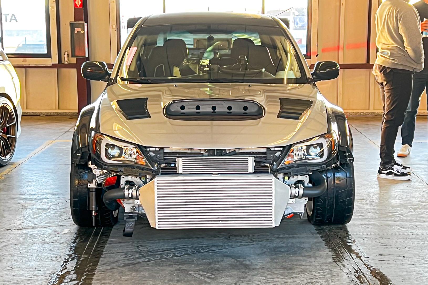 Offering a whopping 690hp at the wheels at 34psi on E85, this WRX benefits from a STi full drivetrain swap and a generous helping of worthy upgrades. An IAG 950 closed-deck EJ25 engine is decked out with an ETS rotated turbo kit, improved fuel delivery with larger injectors, and a Haltech ECU to make it all work. Lubrication and cooling has been addressed with more capable hardware to keep it running strong in demanding conditions at the track.